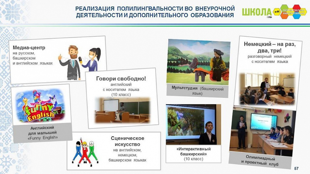 Почему выбраны именно английский и башкирский языки? Как известно, английский язык – это язык международный, на нем общаются люди во многих странах мира. Английский язык прижился не только на своей исторической родине, в Англии, но и в тех странах, которые раньше были колониями Британской империи: в Австралии, африканских государствах и т. д. Поэтому именно английскому языку родители обучают своих детей. Изучение же башкирского языка помогает развивать в ребенке чувство привязанности, преданности и ответственности по отношению к своей Родине, воспитывать свободную, творческую, толерантную личность, знающую и уважающую родную культуру.
