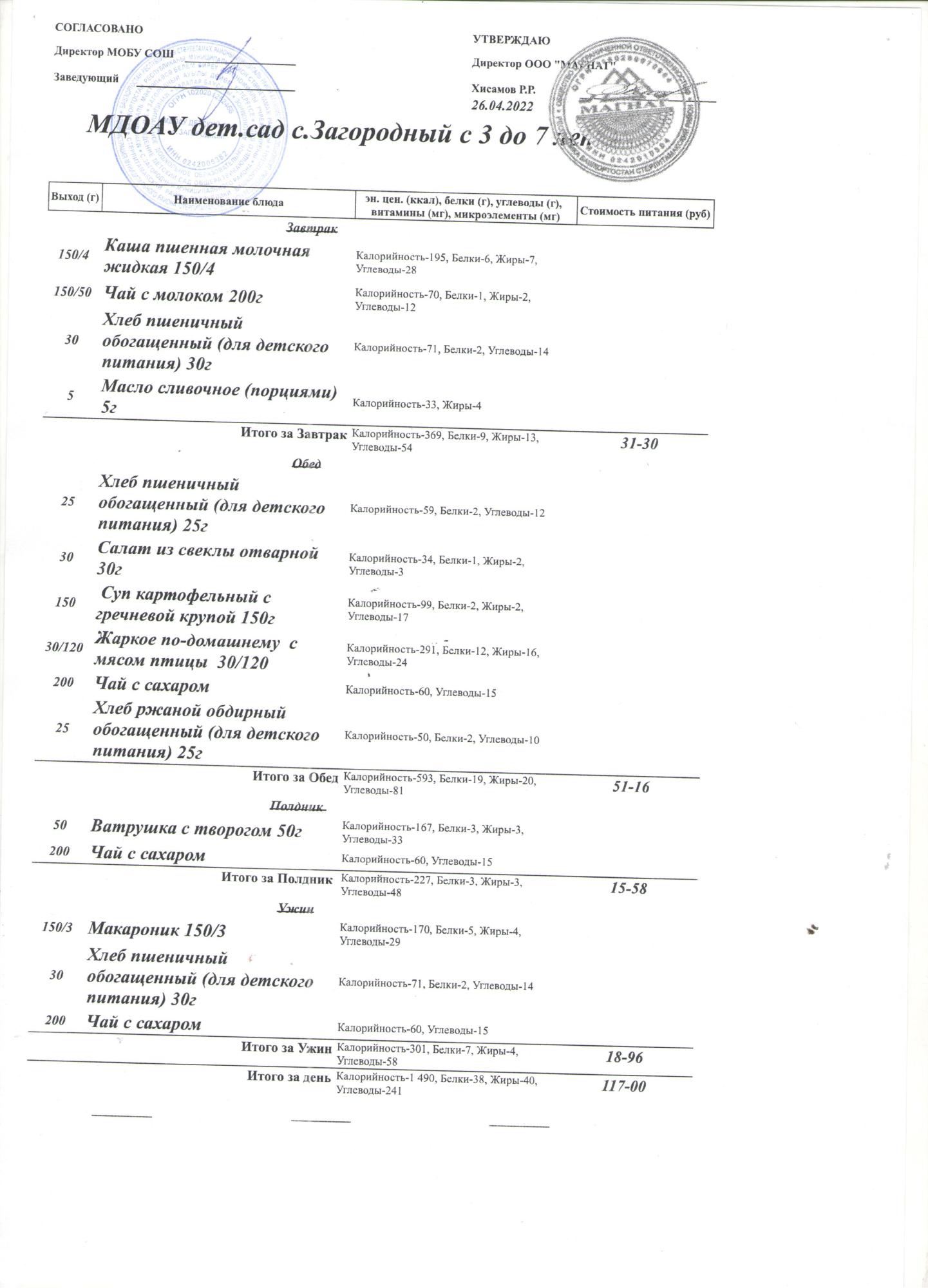 (Меню на 26.04.2022 года (от 3 до 7 лет))