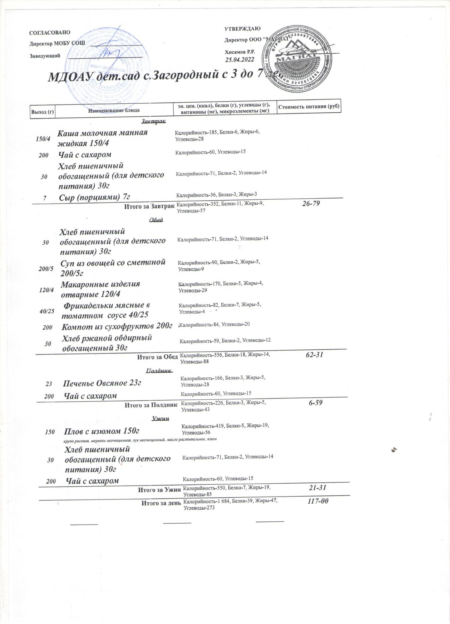 (Меню на 25.04.2022 года (от 3 до 7 лет))