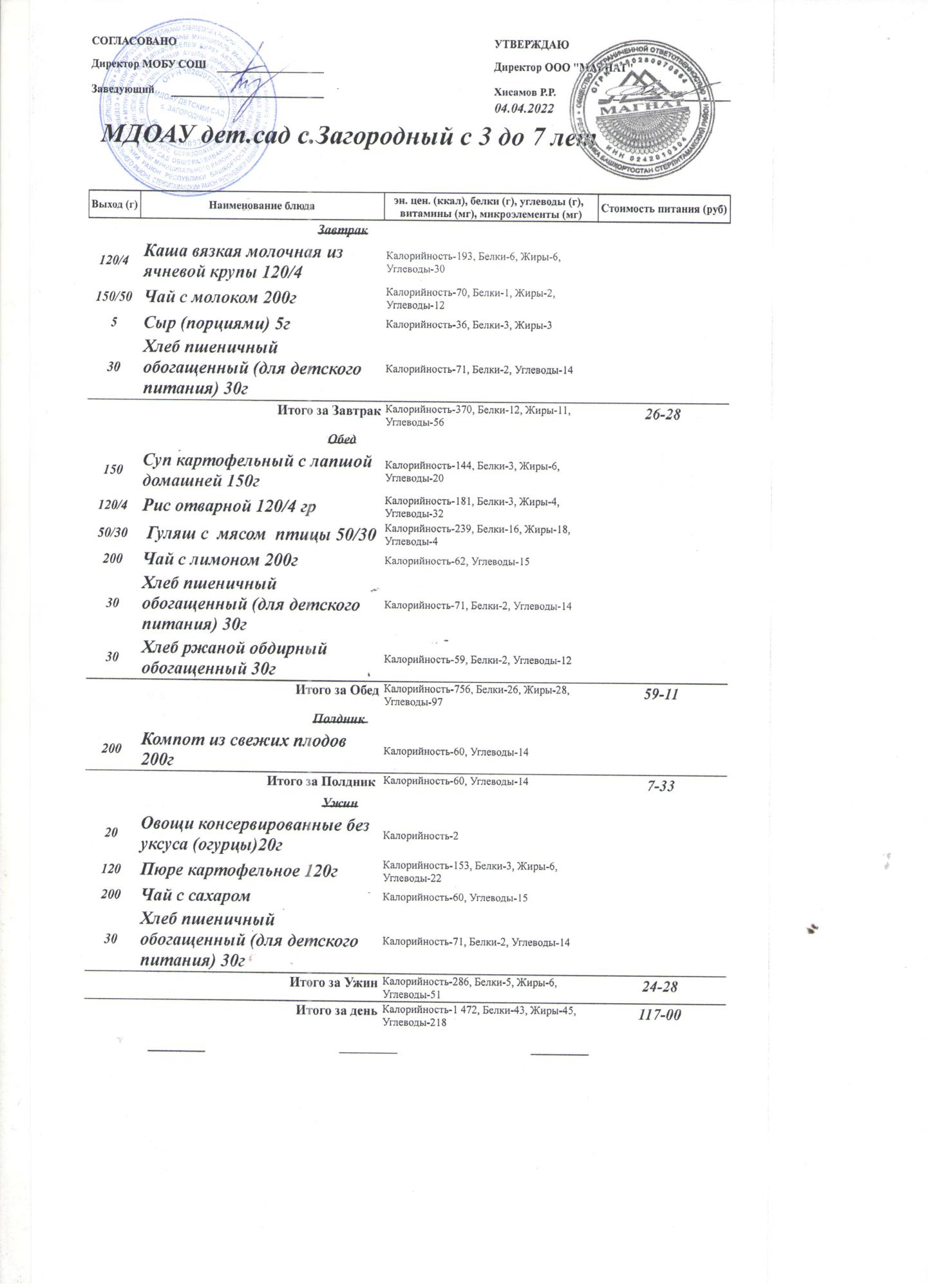 (Меню на 04.04.2022 года (от 3 до 7 лет))
