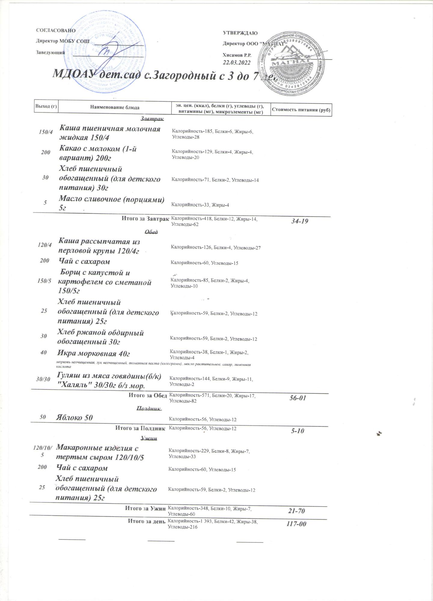 (Меню на 22.03.2022 года (от 3 до 7 лет))