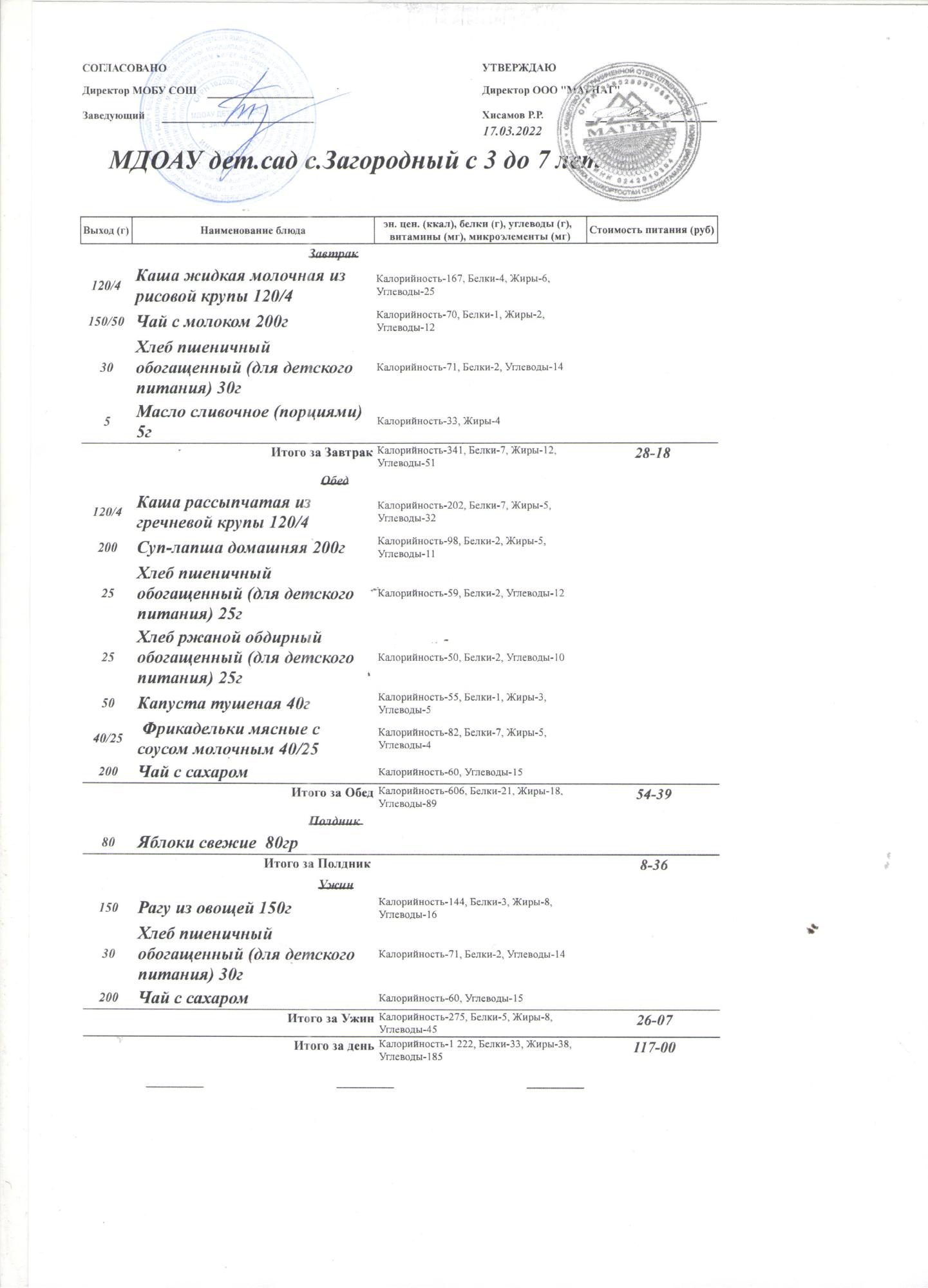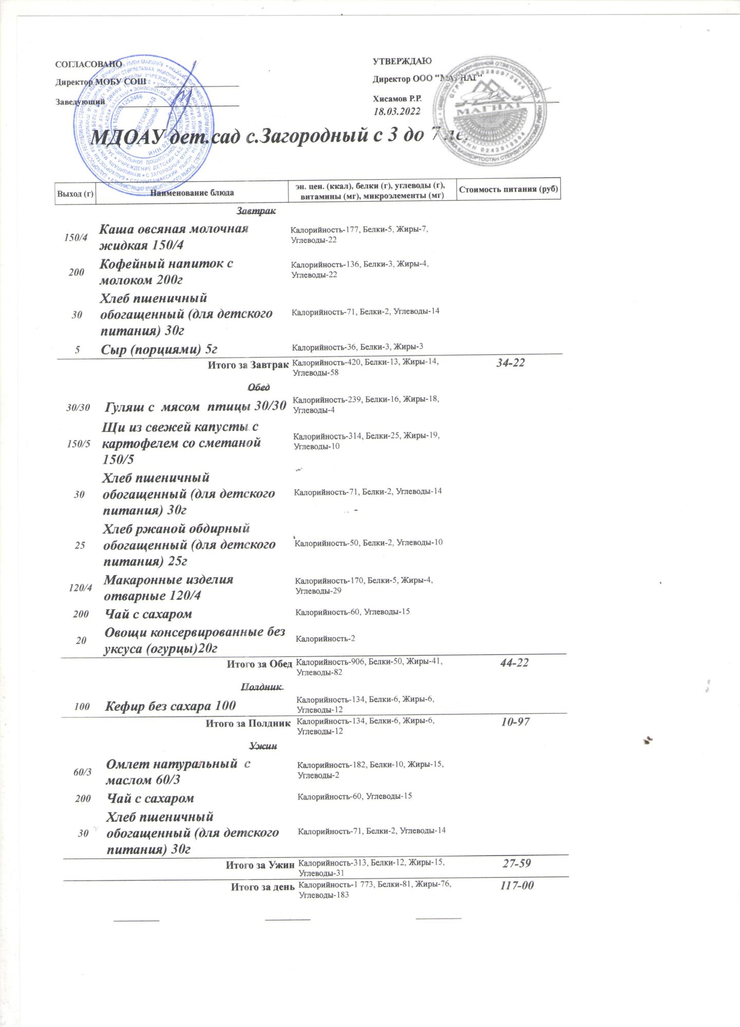 (Меню на 17.03.2022 года (от 3 до 7 лет))
