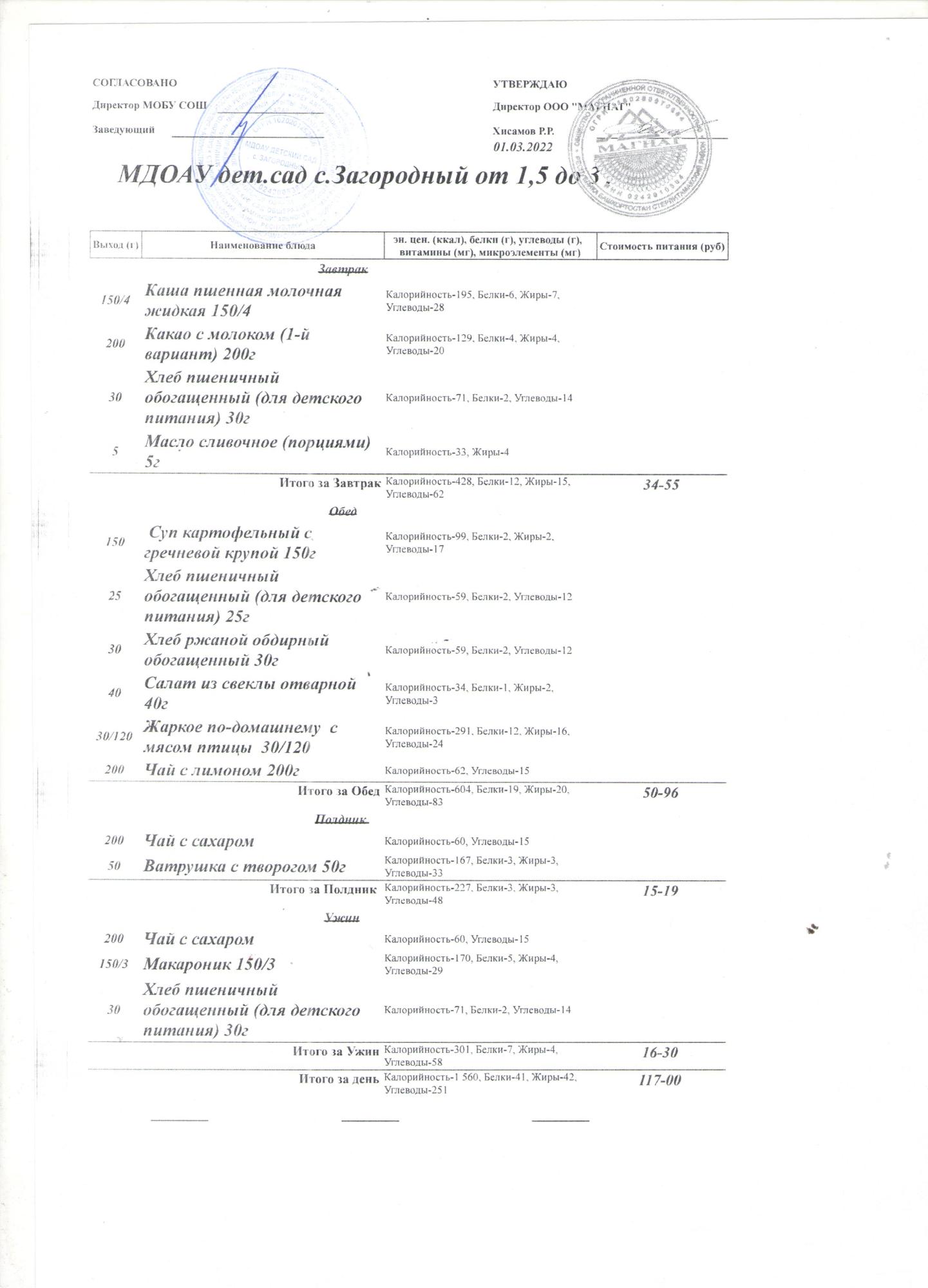 (Меню на 01.03.2022 года (от 3 до 7 лет))