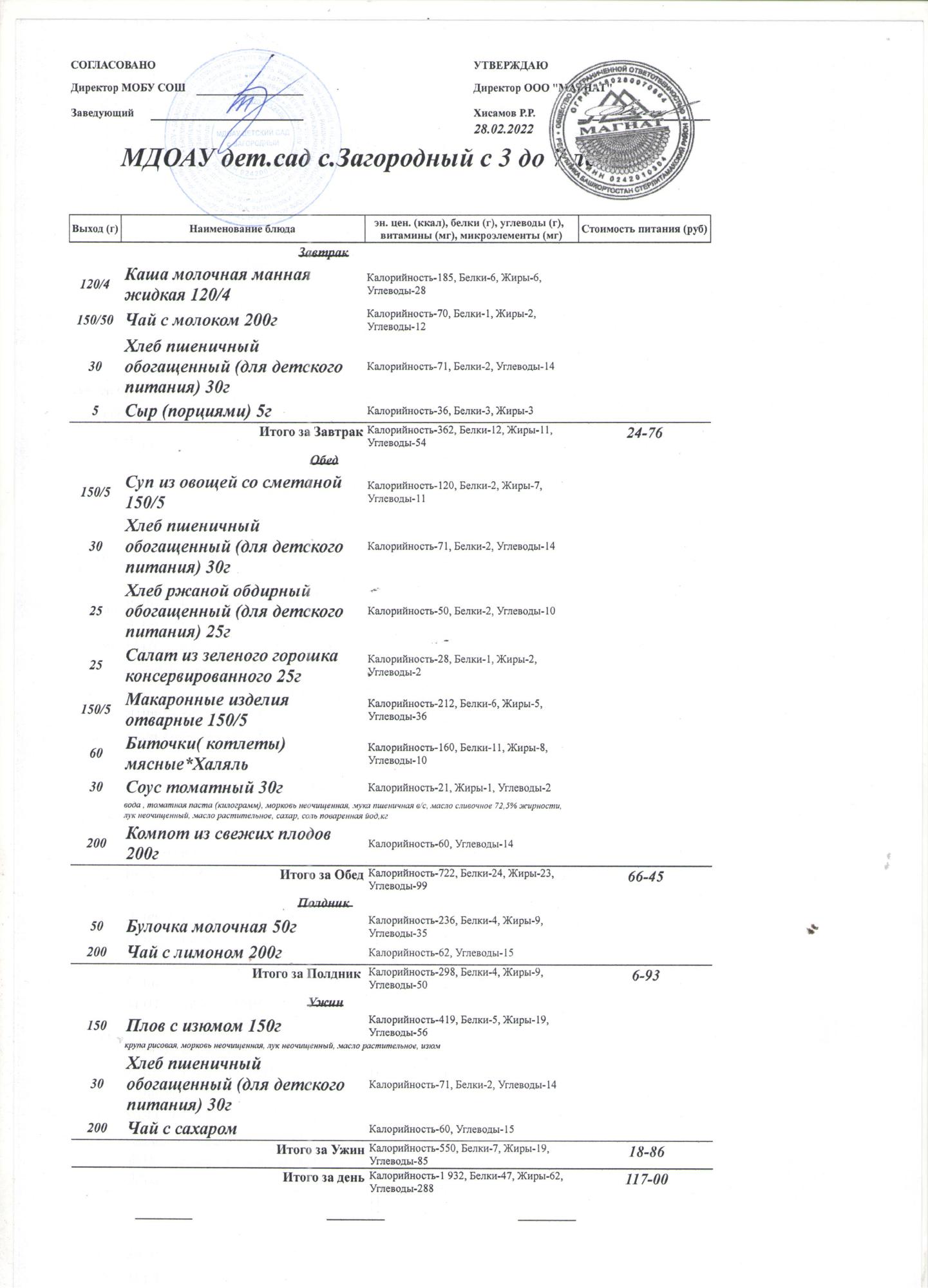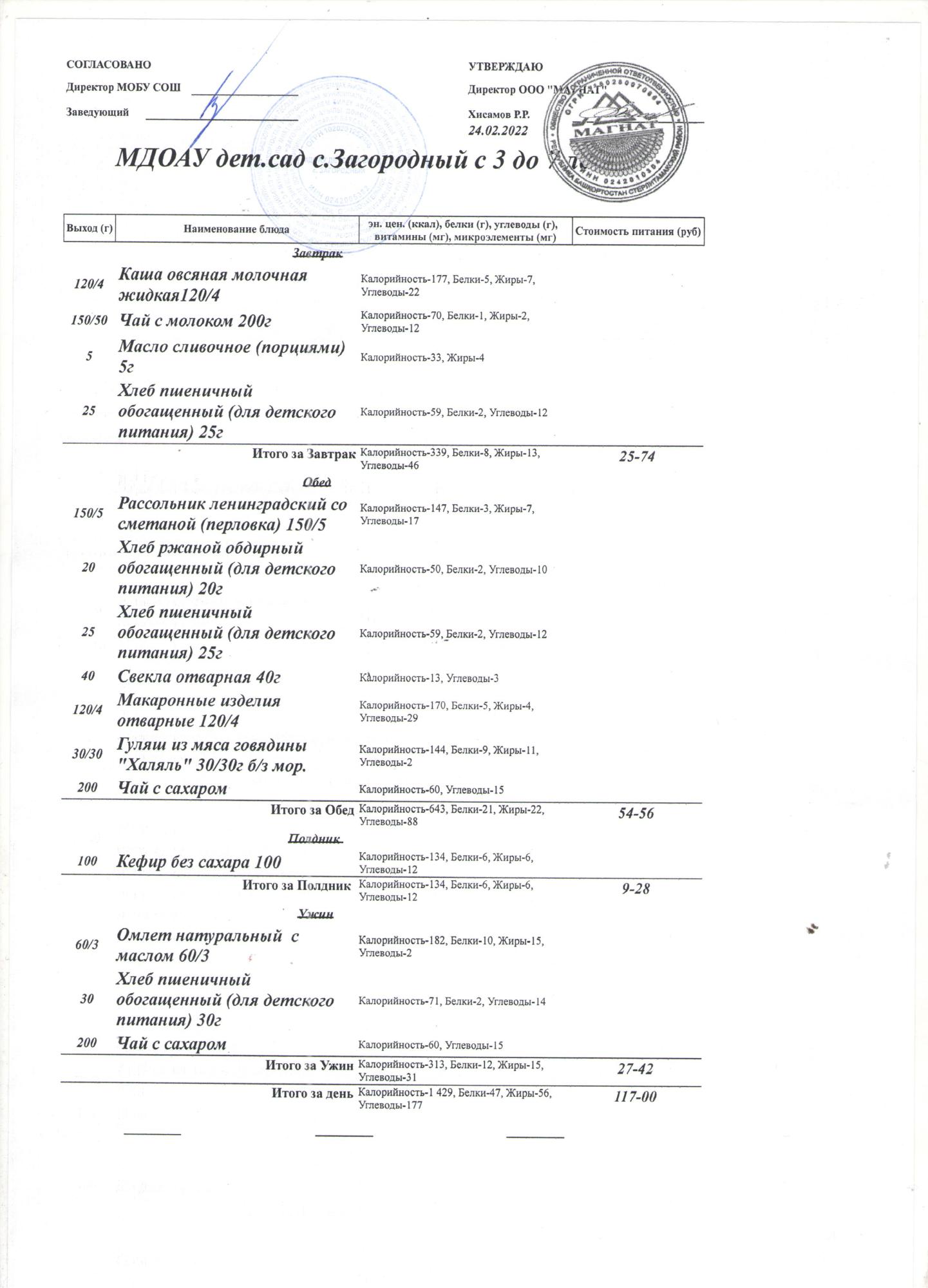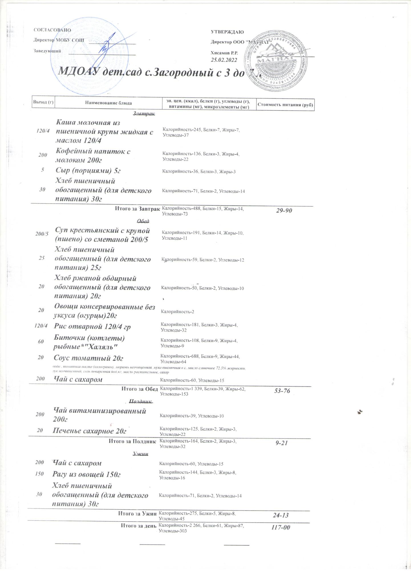 (Меню на 24.02.2022 года (от 3 до 7 лет))