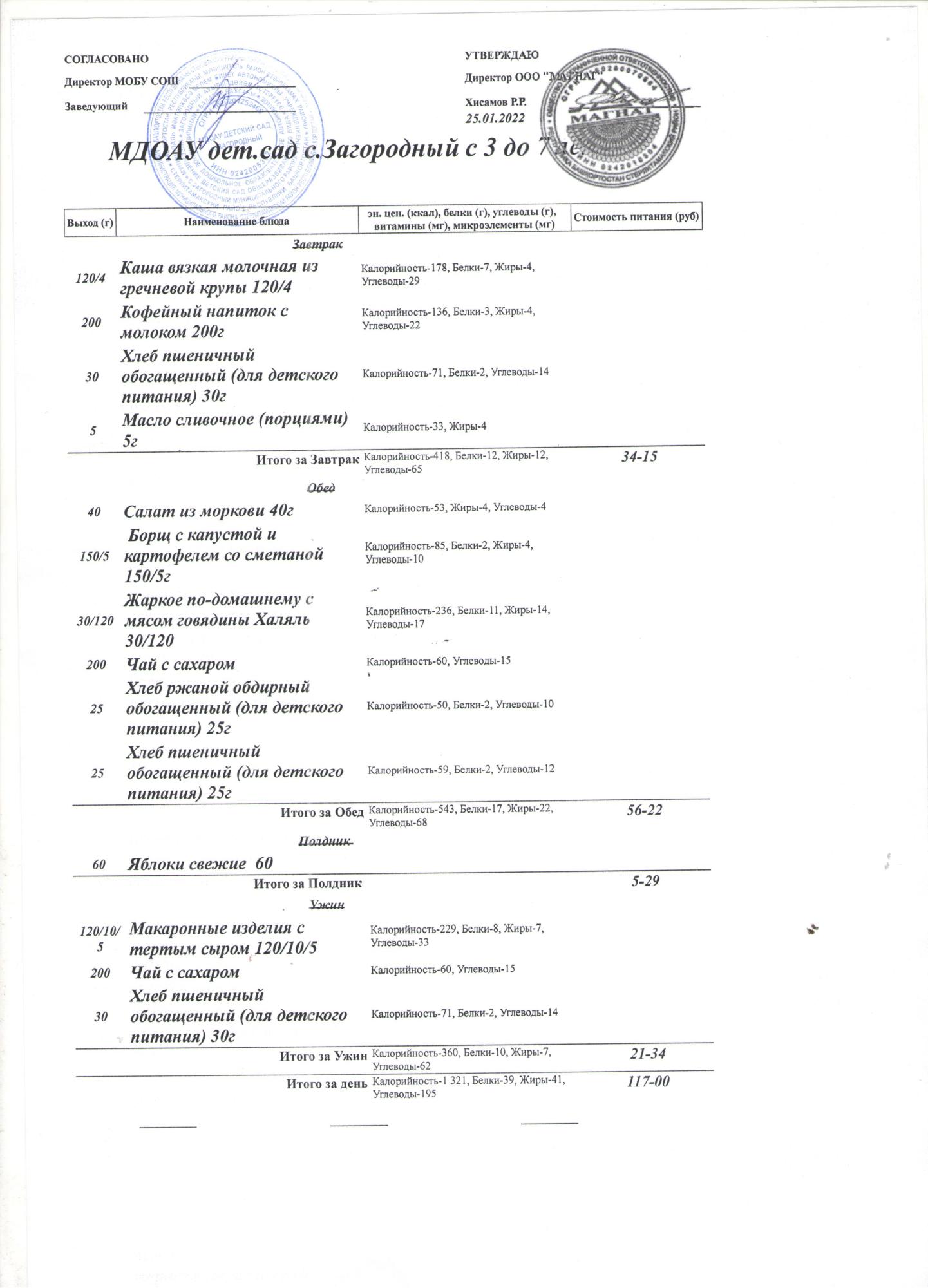 (Меню на 25.01.2022 года (от 1,5 до 3 лет))