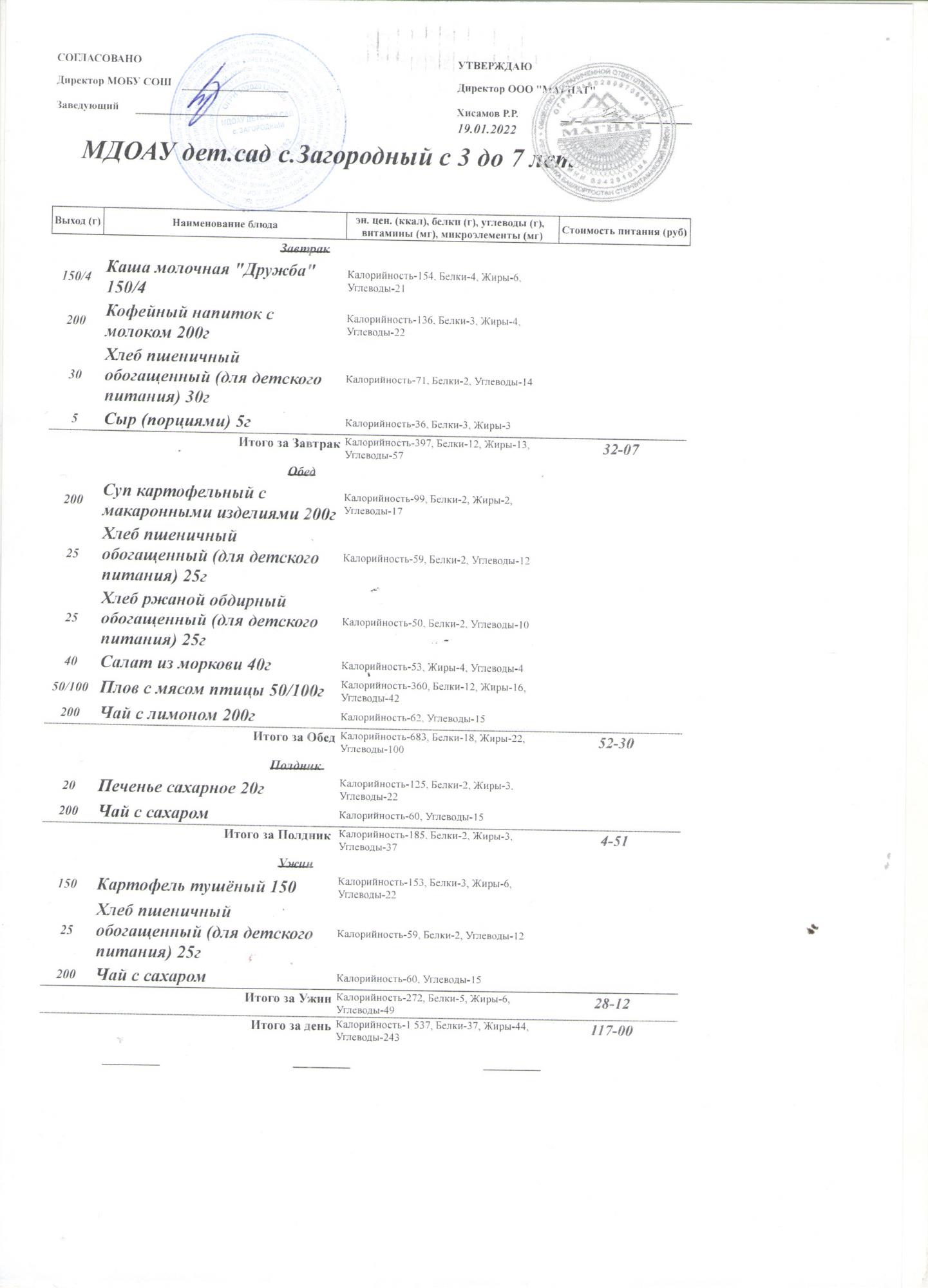(Меню на 19.01.2022 года (от 1,5 до 3 лет))