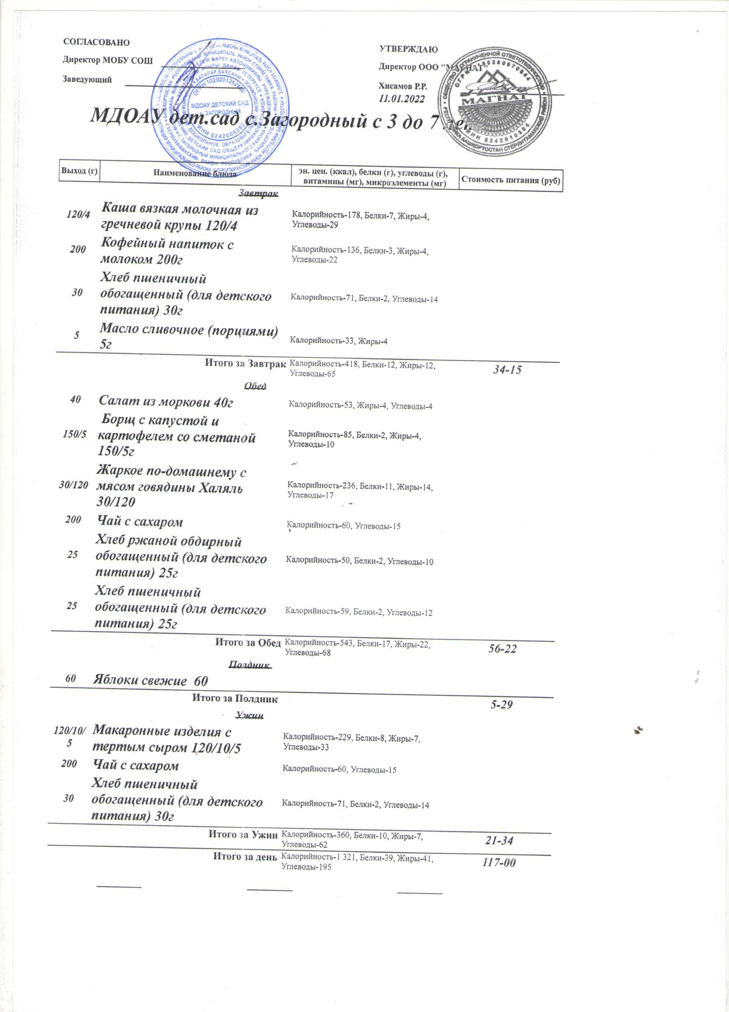 (Меню на 11.01.2022 года (от 3 до 7 лет))