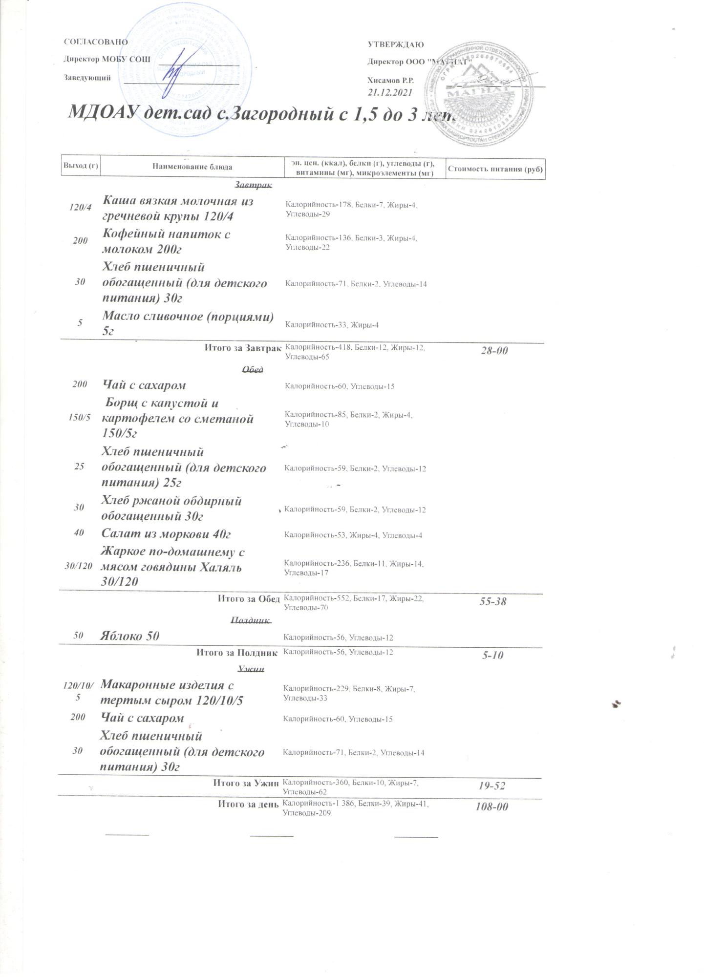 (Меню на 21.12.2021 года (от 1,5 до 3 лет))