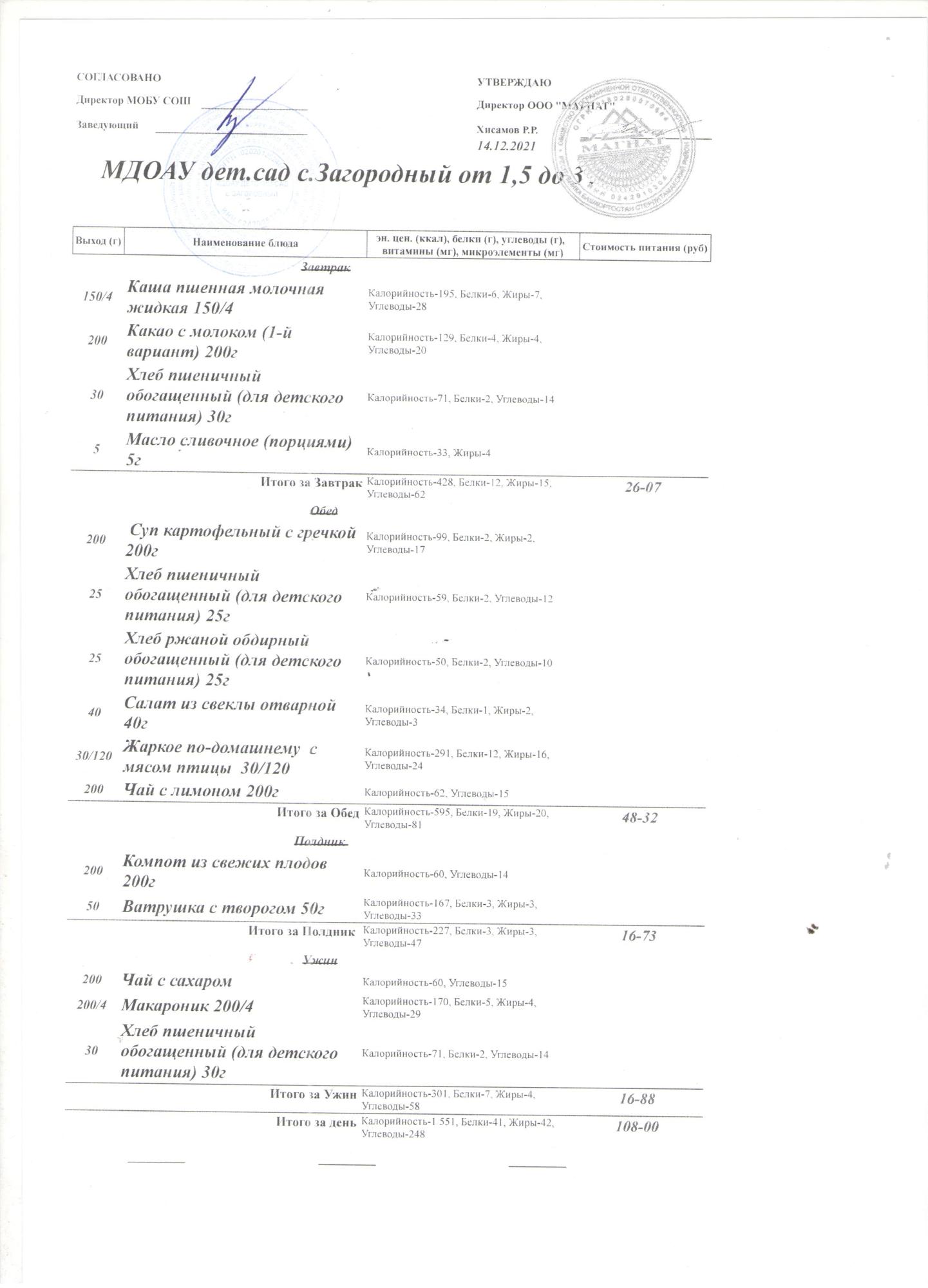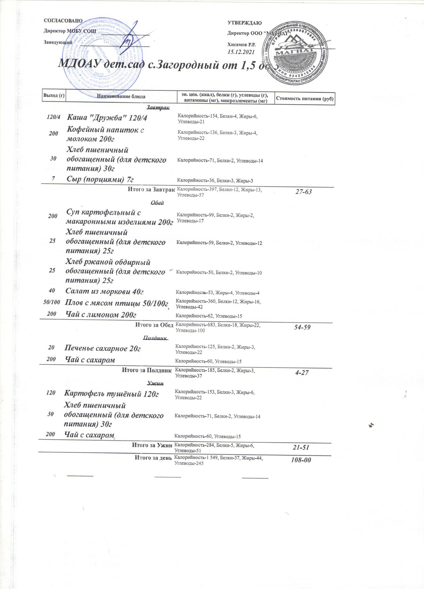(Меню на 15.12.2021 года (от 1,5 до 3 лет))
