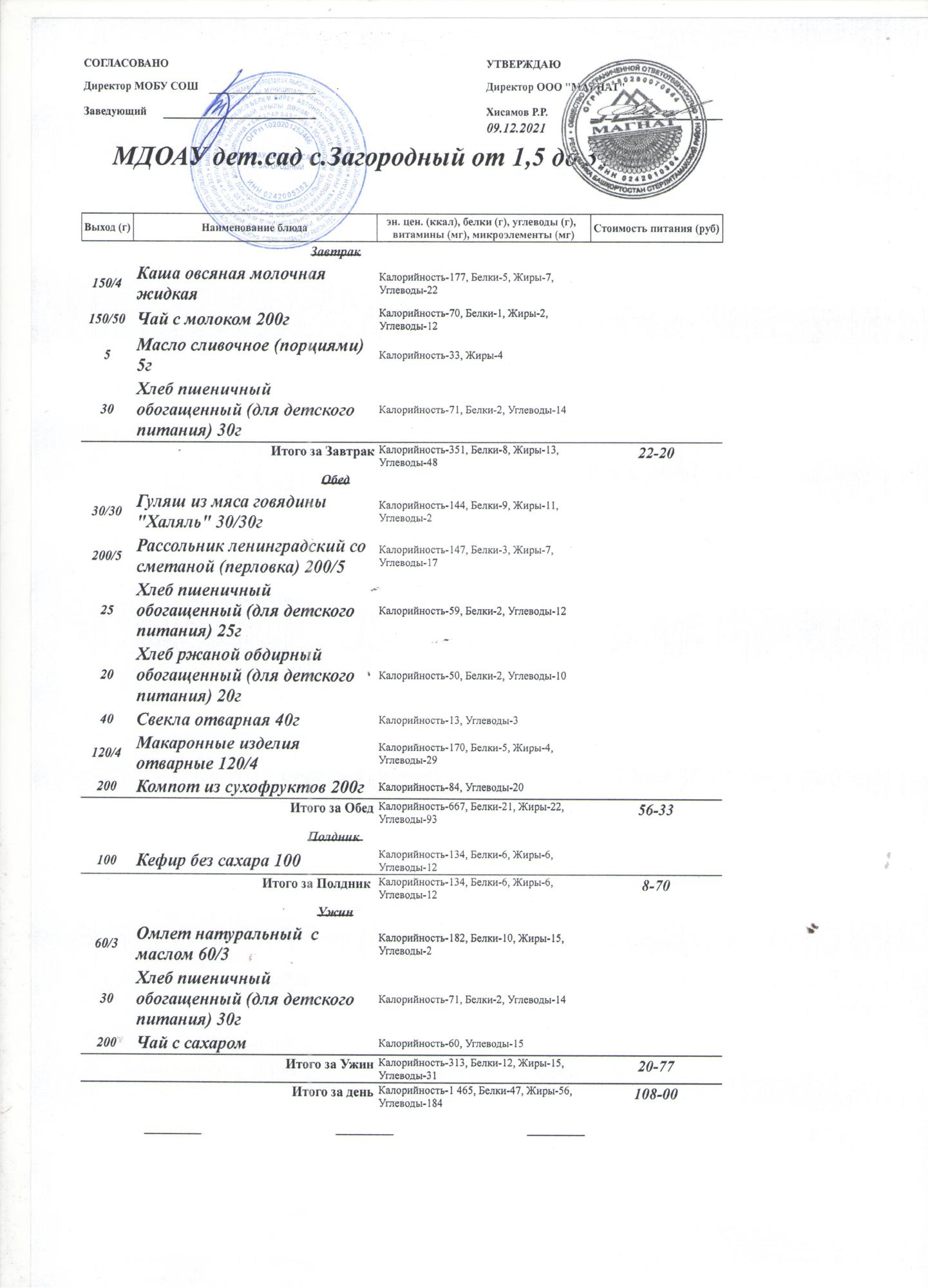 (Меню на 9.12.2021 года (от 3 до 7 лет))