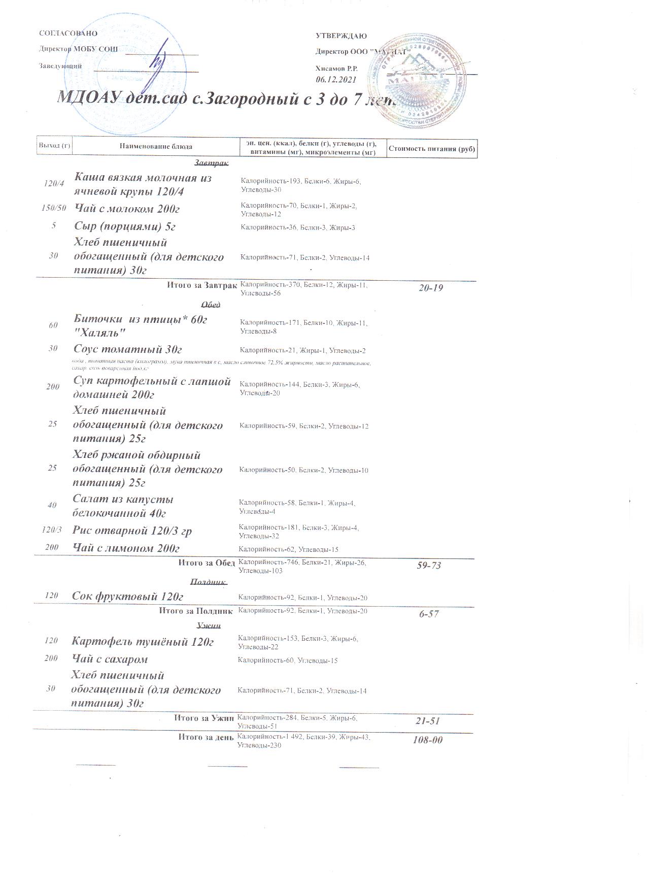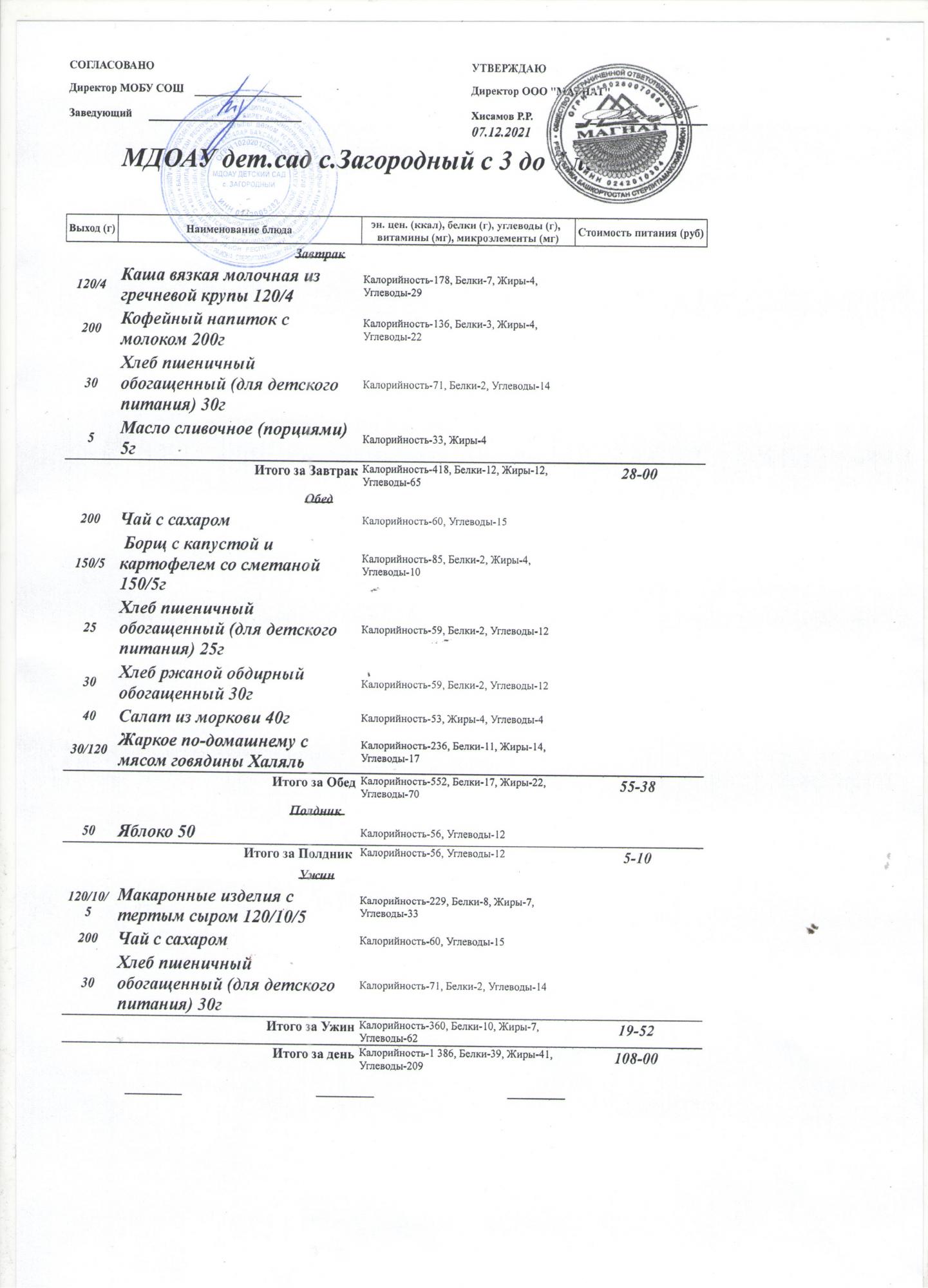 (Меню на 7.12.2021 года (от 3 до 7 лет))