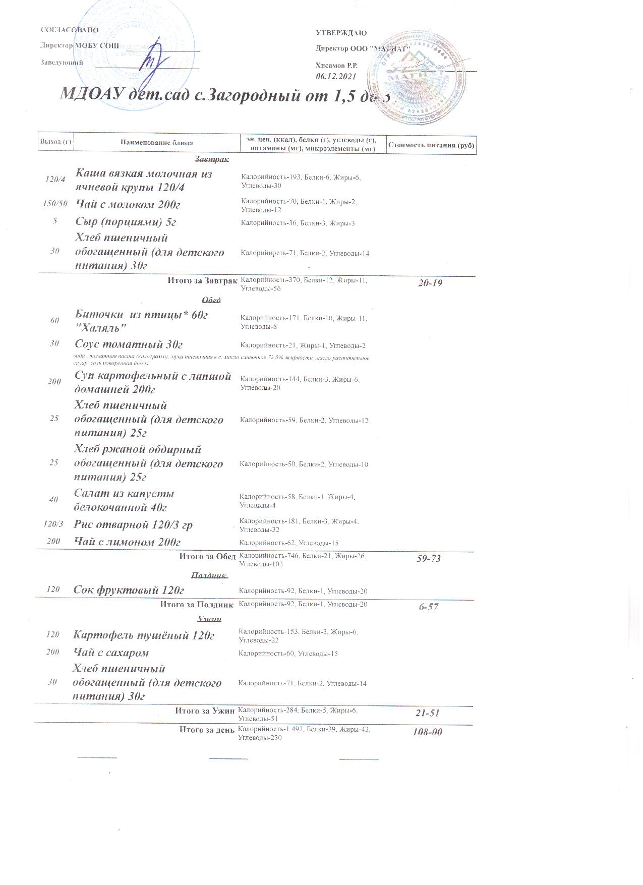 (Меню на 6.12.2021 года (от 1,5 до 3 лет))