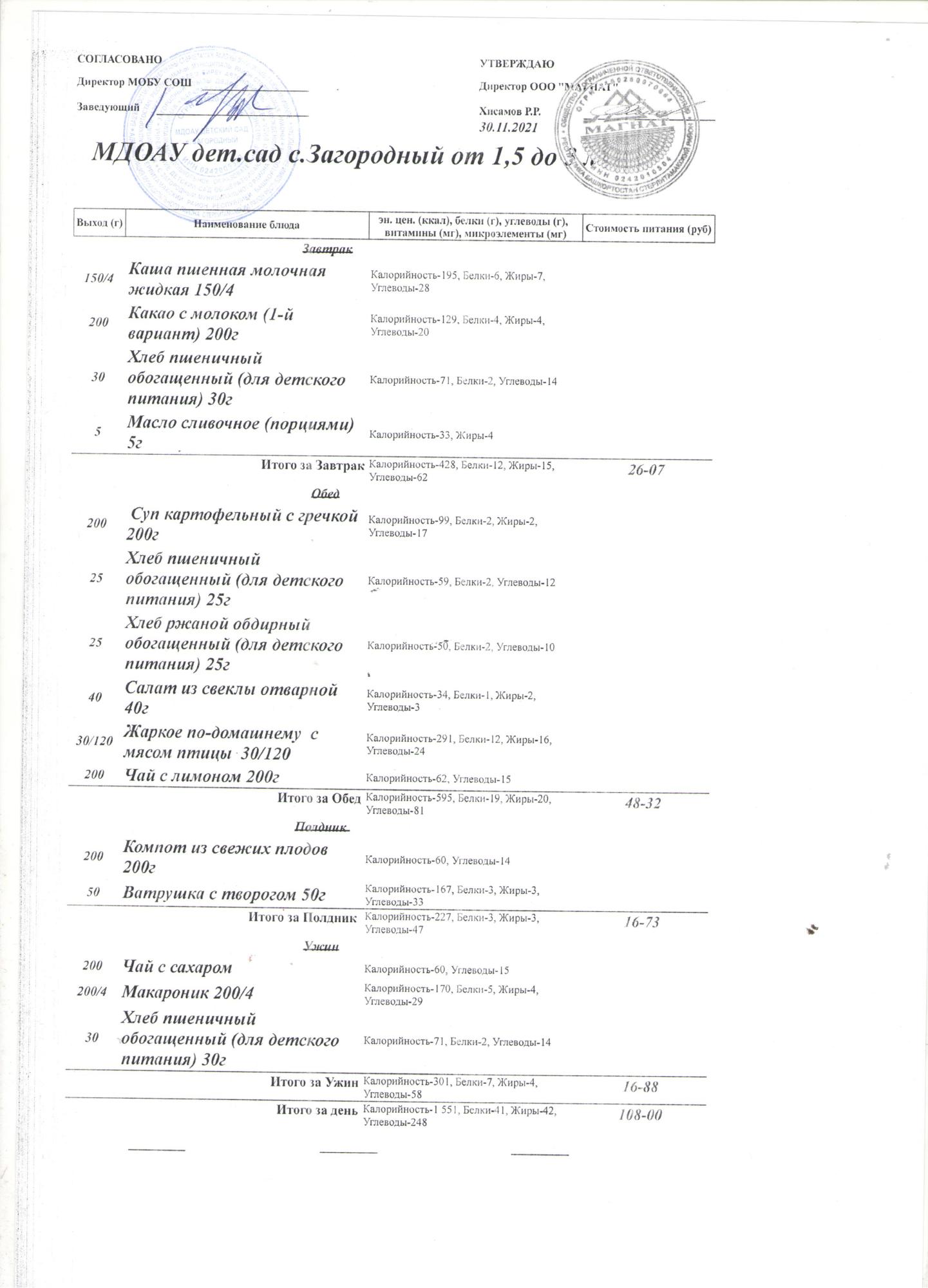 (Меню на 30.11.2021 года (от 1,5 до 3 лет))