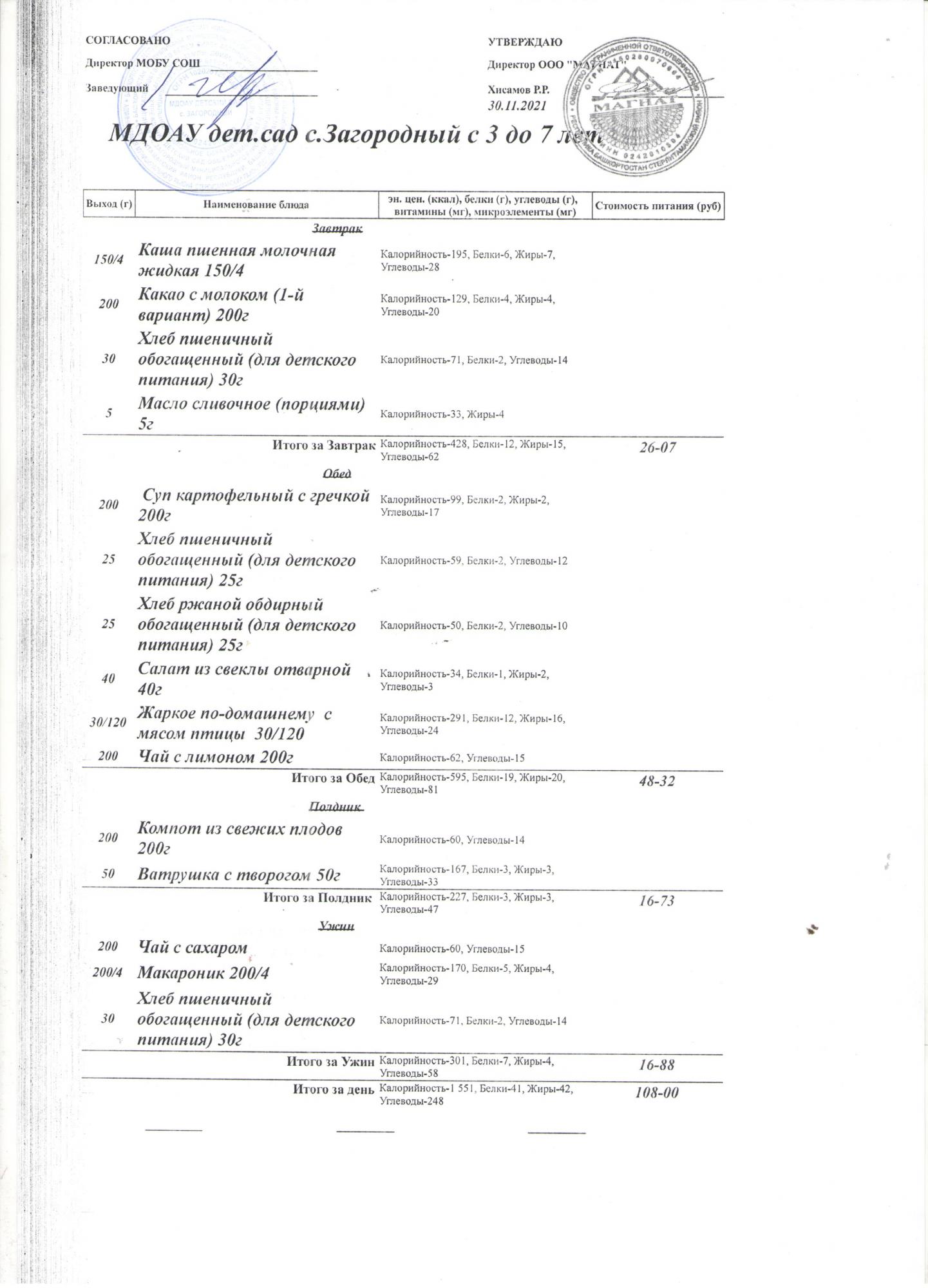 (Меню на 30.11.2021 года (от 3 до 7 лет))