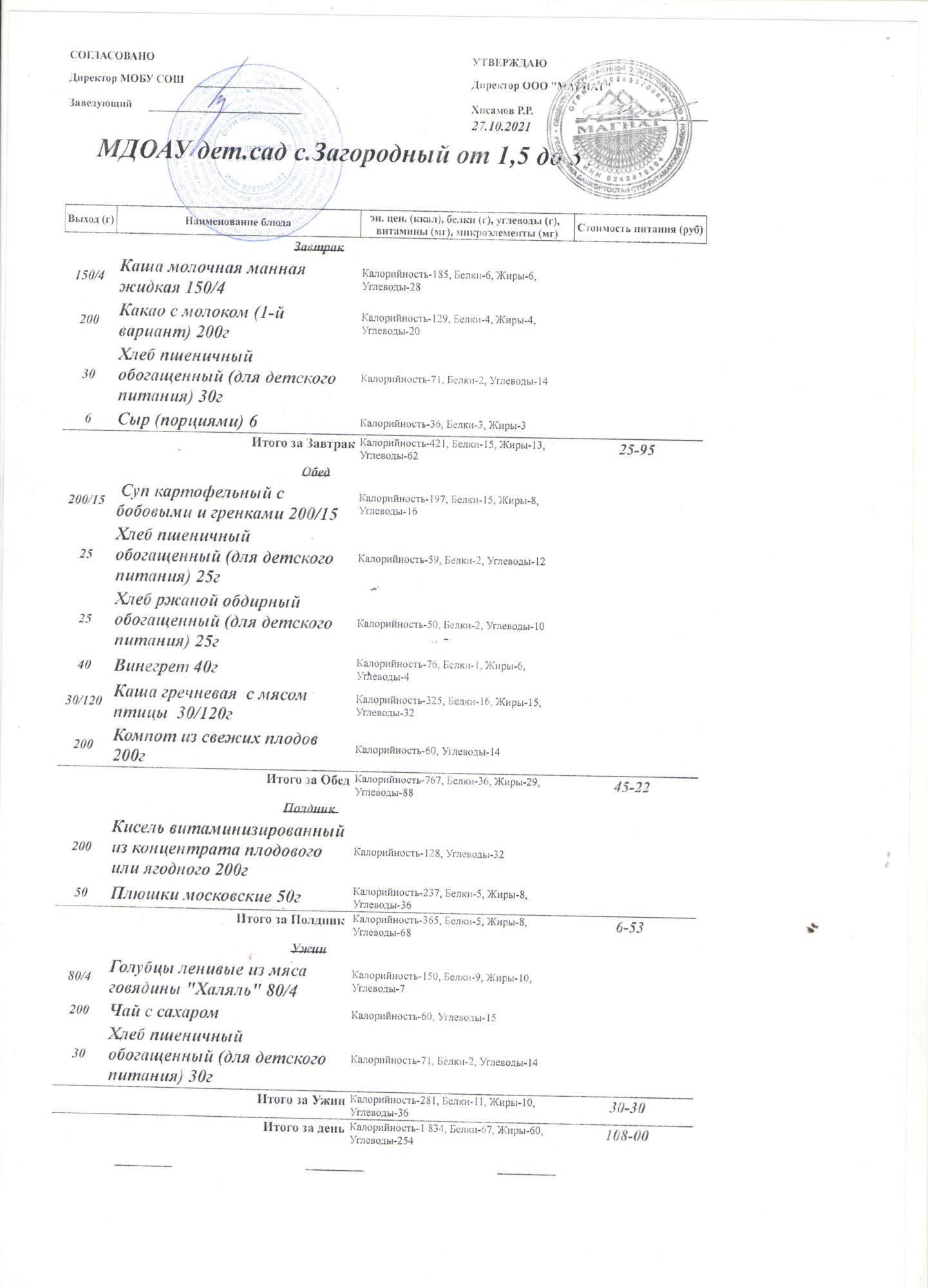 (Меню на 27.10.2021 года(с 1,5 до 3 лет))
