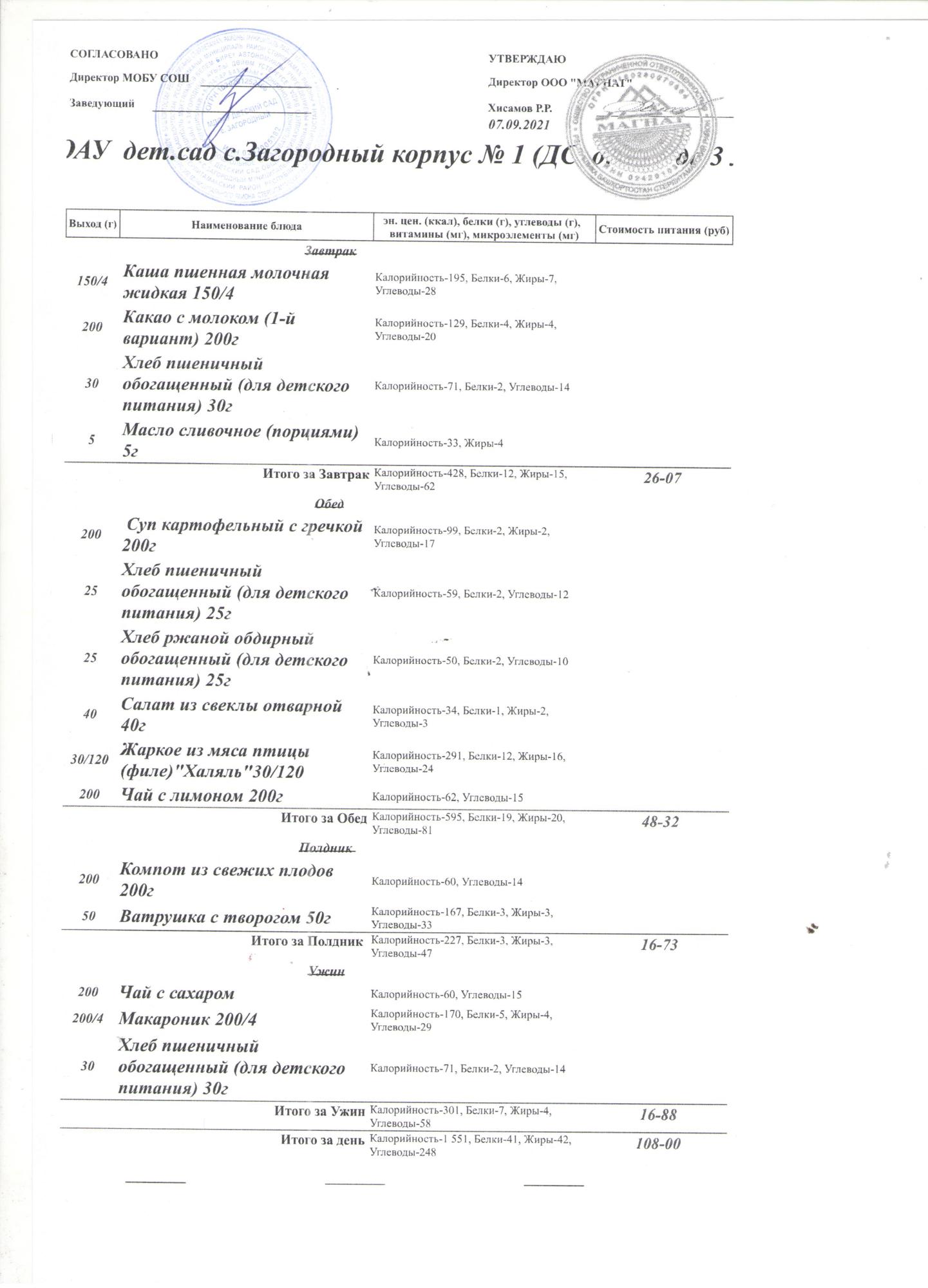 (Меню на 07.09.2021 года (от 1,5 до 3 лет))