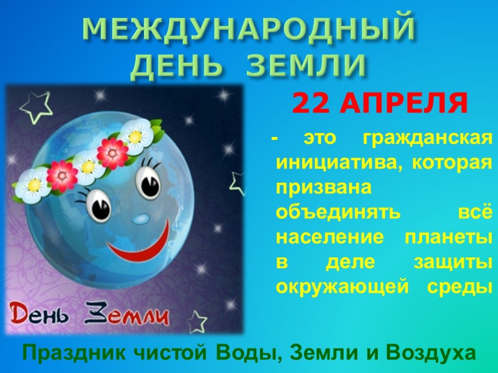 Главной задачей мероприятий в нашем детском саду, проходивших в этот день, было привлечь внимание дошкольников к проблемам окружающей среды и формирования у них экологически осмысленной культуры личности и осознано-правильного отношения к нашей планете — Земля.